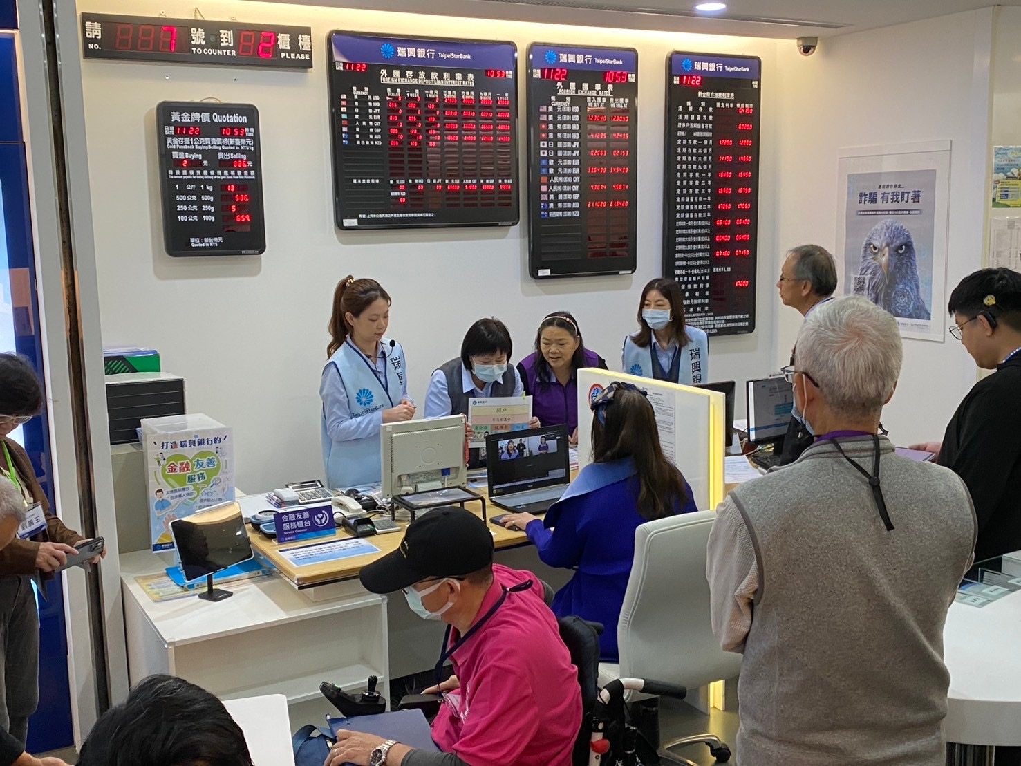 銀行局林副局長志吉率隊帶領各界專家,蒞臨瑞興銀行南京東路分行,體驗無障礙設施及友善金融服務,